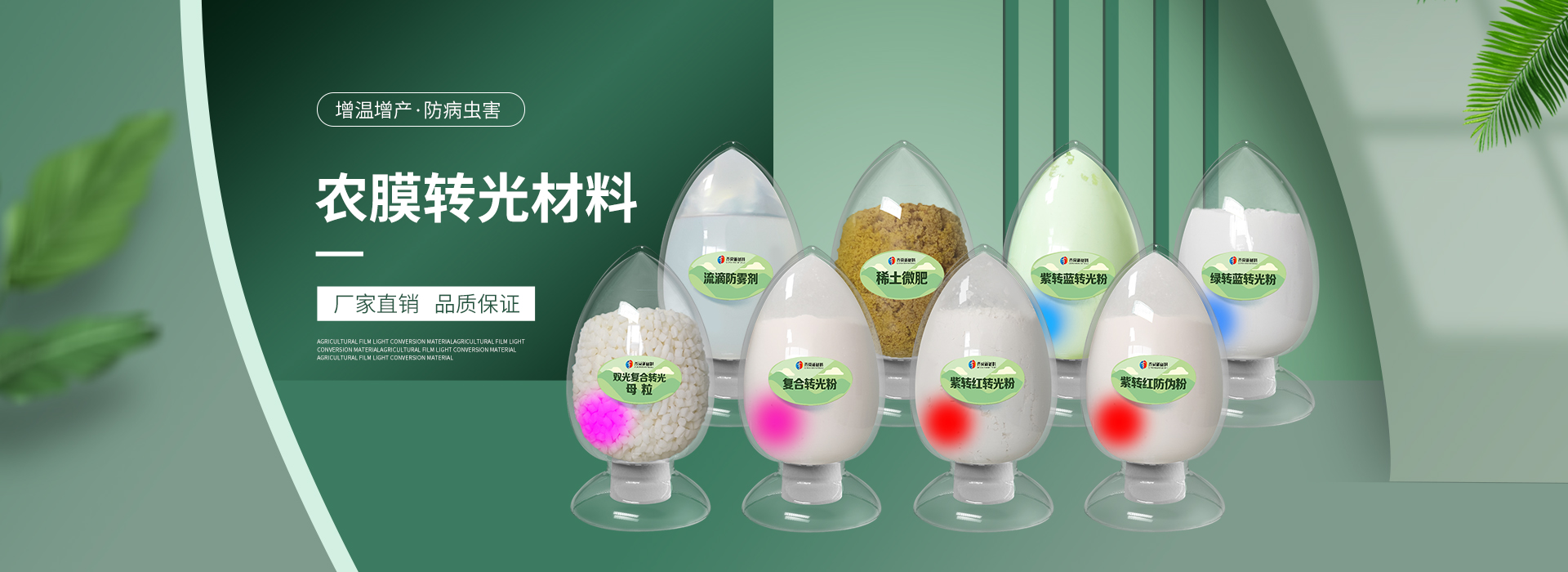 我公司前身為2011年成立的淄博舜明熒光科技有限公司。隨著公司的發(fā)展,廠址從淄博搬遷到青島,2020年5月公司重新注冊(cè)為山東齊舜新材料有限公司。公司注冊(cè)資本2000萬元,主要從事新材料研究和開發(fā)。目前主要產(chǎn)品包括:農(nóng)膜用轉(zhuǎn)光粉、轉(zhuǎn)光母粒以及轉(zhuǎn)光農(nóng)膜;農(nóng)膜用長(zhǎng)效防霧流滴涂覆液;復(fù)合肥添加劑及葉面肥(稀土微肥);防偽粉;LED封裝熒光粉;夜光粉;太陽能光伏電池增效熒光粉;鋰電池正極材料等。